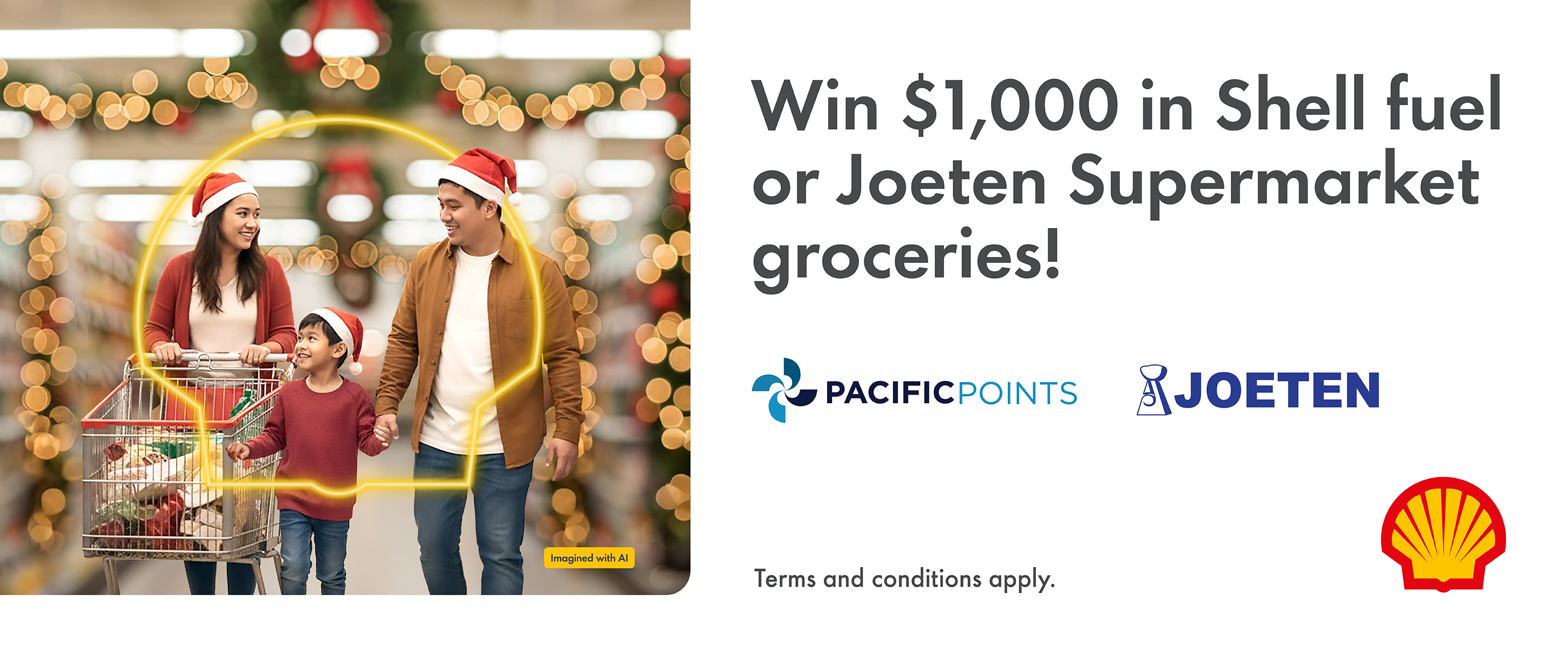 Fuel up and scan your PACIFICPOINTS this holiday season for a chance to win $1,000 in Shell fuel vouchers or Joeten Supermarket gift card.